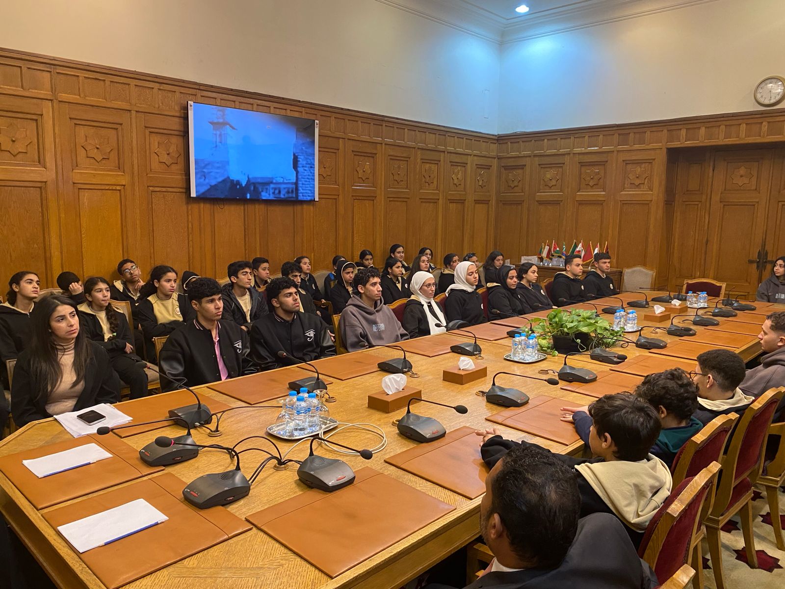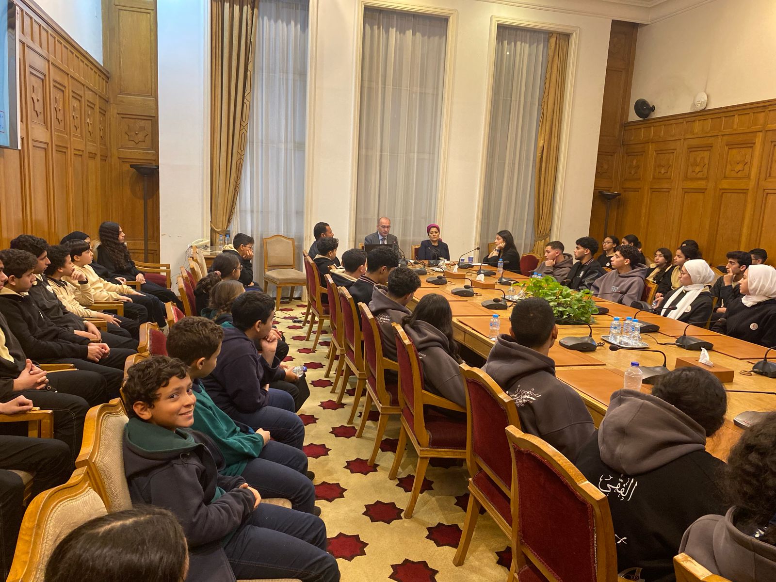 زيارة طلبة نفرتارى لمقر الامانة العامة لجامعة الدول العربية للتعرف على ماتقوم به الجامعة من اعمال بحضور السادة